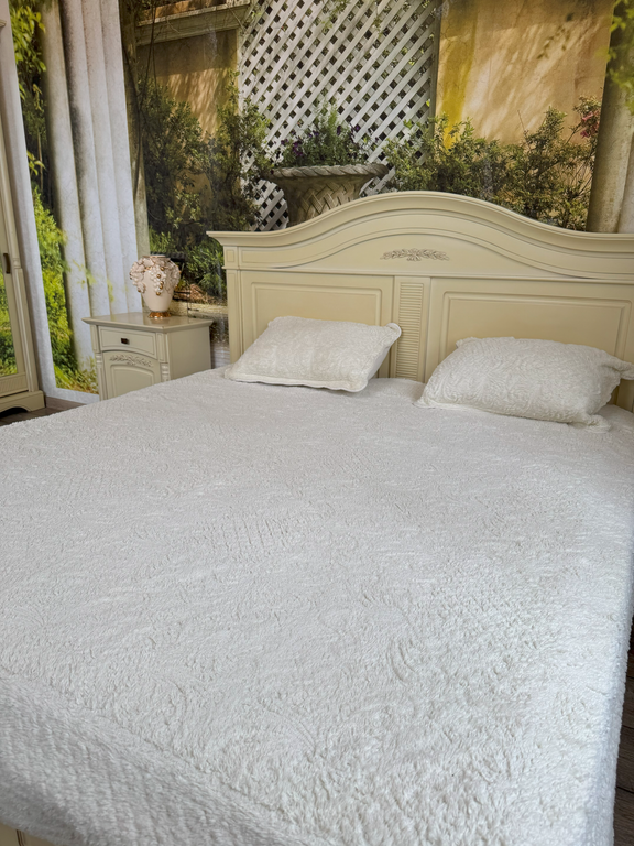 - Мебель: вешалка, зеркало, кровать двуспальная, прикроватные тумбочки, шкаф